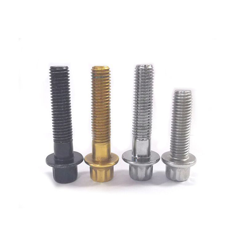 12 -бальний фланцевий гвинт із зменшеним хвостовістю може бути використаний для з'єднання витяжного колектора. Турбіновий колектор може тріснути на отворах болта через теплове напруження. Вони можуть вирішити цю проблему. Гвинтовий стрижень може бути зігнутий під час теплового циклу при 800 ° С для запобігання перелому напруги. Під час розбирання, він більш стійкий до іржі, ніж шестикутна голова. Не забудьте застосувати нікельський антиселічний агент. Його термін служби вдвічі довший, ніж звичайні болти.