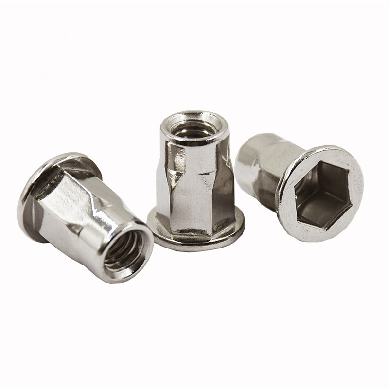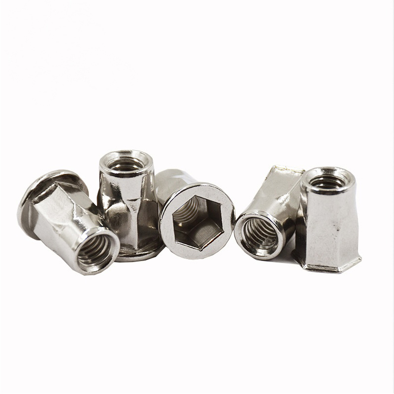A: Ви можете встановити його в будь-які матеріали, якщо спочатку просвердлите шестикутний отвір потрібного розміру. Зазвичай люди використовують м’яку сталь, алюміній і скловолокно. Вони також добре працюють з крихкими або м’якими матеріалами, такими як пластик, ДСП або тонкий листовий метал. Звичайні заклепкові гайки можуть обертатися в цих матеріалах, але ця шестигранна форма захоплює їх краще. Таким чином ви отримаєте різьбове вістря, яке залишається міцним і не обертається.
