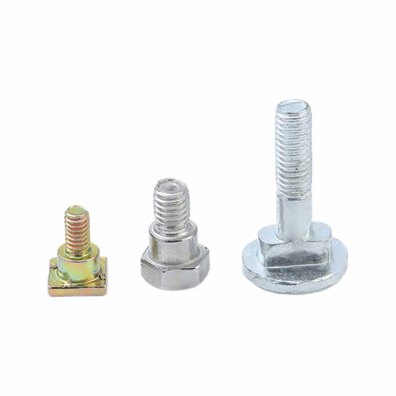 Болти для слотаМоже ідеально відповідати слотом. Спеціальні форми, такі як квадратні головки та Т-подібні головки, можна просто затиснути в канавку, щоб запобігти обертанню болтів. Болт з квадратною головою затискається у квадратній канавці. Коли гайка підтягнута, квадратна головка затискається до стінки канавки, а болт не обертається вздовж. Установка особливо безтурботна, а також може забезпечити міцність на з'єднання.