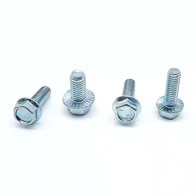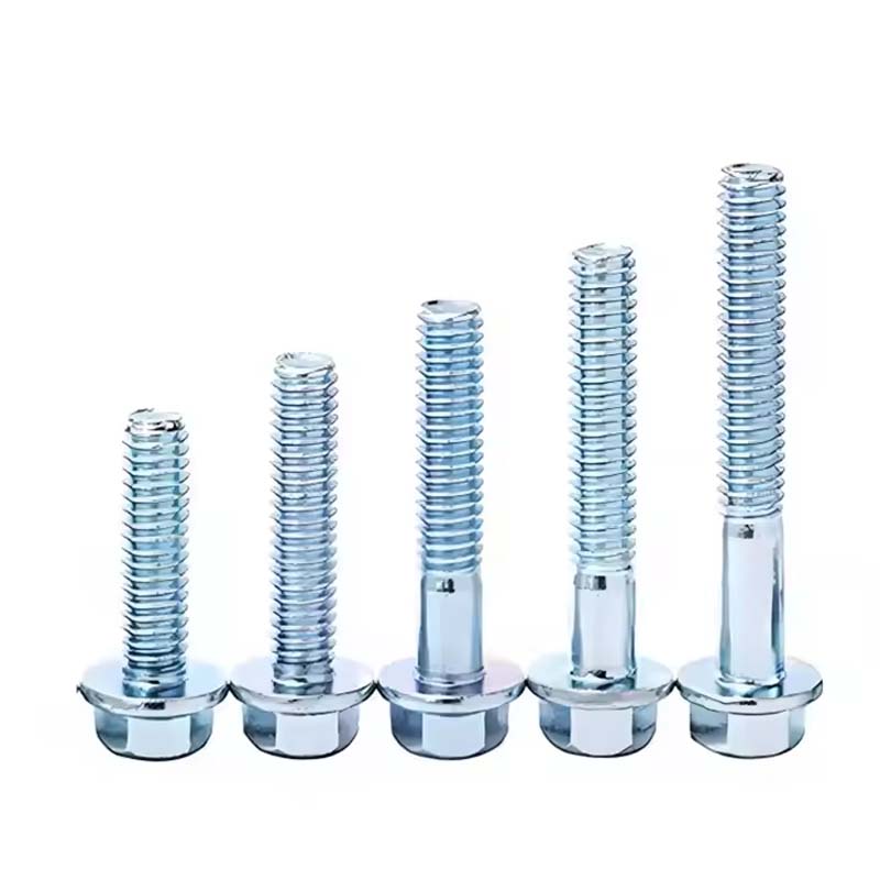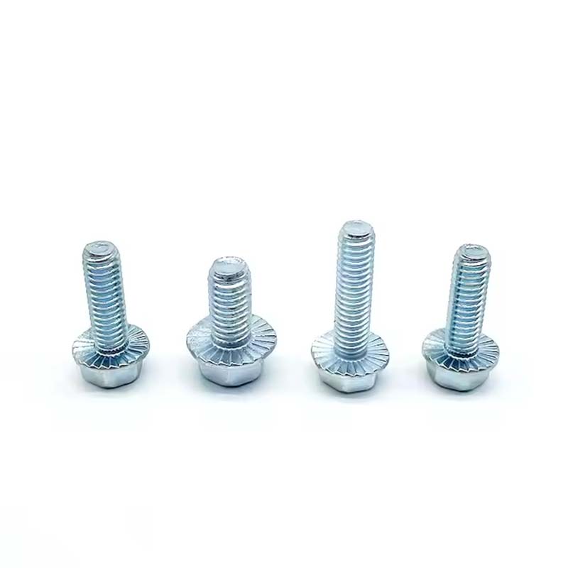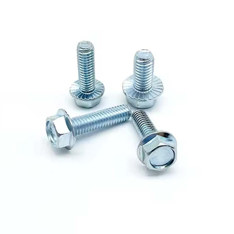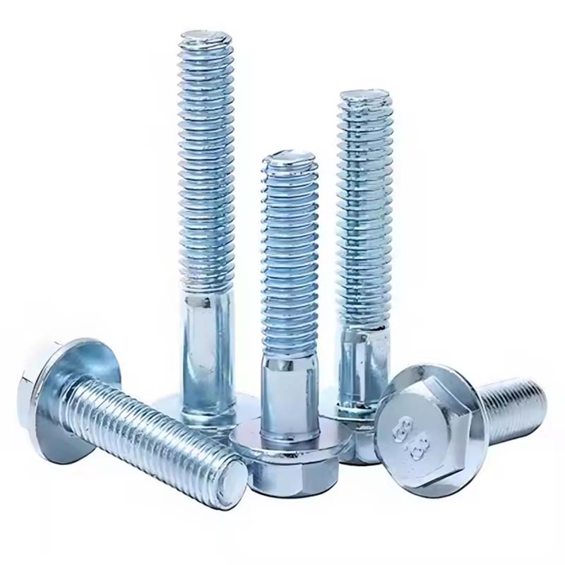 Автомобільне виробництво: в автомобільній промисловості,Фланцеві болти з вуглецевою стальшироко використовуються в ключових частинах двигуна, шасі та системи підвіски завдяки їх антивібраційним властивостям та високій міцності, гарантуючи, що деталі залишаються стабільними при високошвидкісній експлуатації та складних дорожніх умовах.
