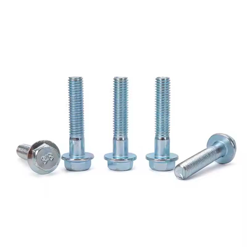 Зболт з вуглецевим сталевим фланцемскладається з шестигранної голови, фланця та гвинта. Шестигранна голова використовується для полегшення використання таких інструментів, як гайкові ключі для затягування; Фланець розташований у нижній частині шестигранної головки, під якою прокладка фіксується разом з шестигранною головкою, щоб забезпечити більшу контактну зону, що допомагає затягнутись і запобігти розпушуванню; Гвинт з вуглецевим сталевим гвинтом фланця з цинковим гвинтом - це циліндр із зовнішніми нитками, який використовується для співпраці з гайкою, щоб усвідомити затягування з'єднання.