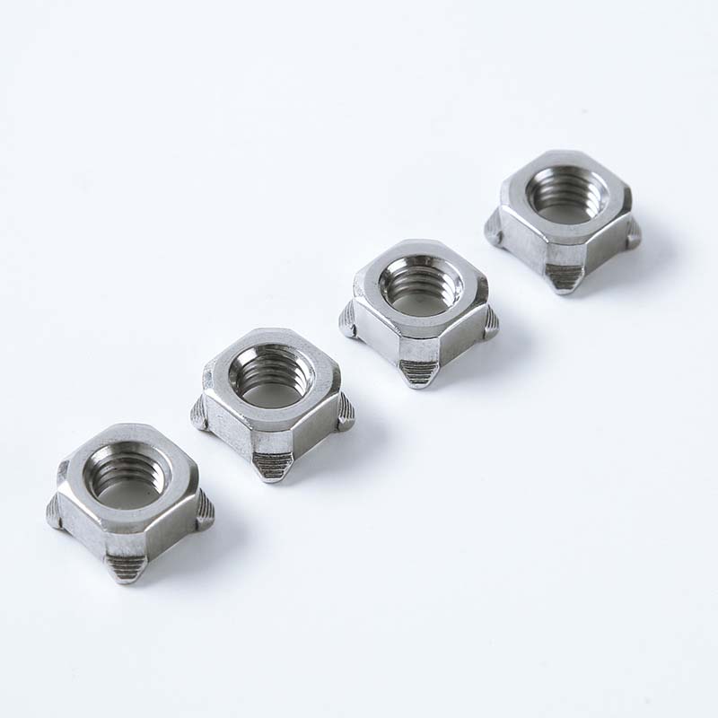 Зварювальні квадратні гайки класу 5 із типом 1D легко та швидко зварюються. Вирівняйте обладнання з невеликими виступами на гайці та трохи нагрійте. Тоді гайку можна швидко приварити до залізної пластини або інших металевих заготовок. У порівнянні зі звичайними гайками, які вимагають загвинчування для монтажу, цей спосіб значно економить час. Гайка навряд чи легко обертається, і її стабільність набагато краща, ніж у круглої гайки.