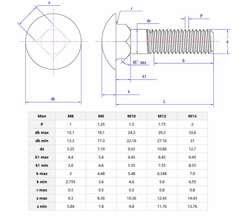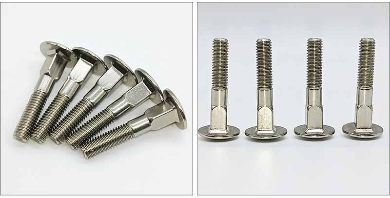Квадратна шия болта дуже особлива. Під час встановлення зробіть квадратну канавку на матеріал, який відповідає квадратній шиї. Після вставки болта квадратна шия буде міцно затиснута в канавці. При затягуванні гайки болт не обертається. Робітники можуть затягувати гайку однією рукою, що підвищує ефективність встановлення та робить з'єднання більш твердим та надійним.
