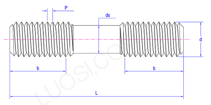 Подовжена рівна довжина подвійна кінцева шпилька в цілому-це стрункий металевий стрижень з рівномірними нитками на обох кінцях, і ці нитки проходять через обидва кінці. Середня частина зазвичай - це гладкий і звичайний стрижень. Довжина може бути налаштована відповідно до фактичних потреб.