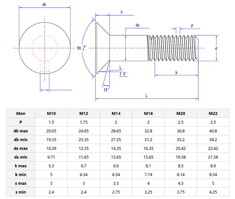 Головаплоский болт -болтє рівним. Після встановлення він може бути промиватися з поверхнею роз'єму. Вони не мають виступу і не впливатимуть на зовнішній вигляд. Нижня головка болта є зворотним виступаючим блоком ключів, який можна точно вставити в канавку.