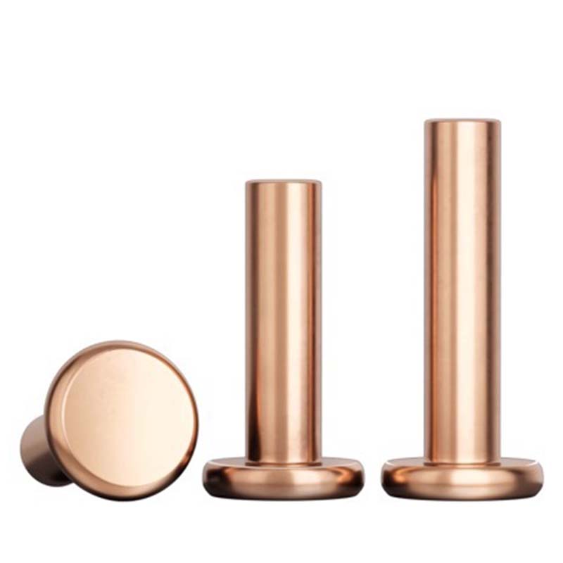 Заклепки з плоскою головкою — це циліндричні корпуси без різьби та з гладкими поверхнями, спеціально розроблені для стандартних процесів дугового зварювання. Внутрішня частина зварювального кінця наповнена паяльним агентом, який може зробити процес зварювання більш плавним і відповідати різним вимогам використання.