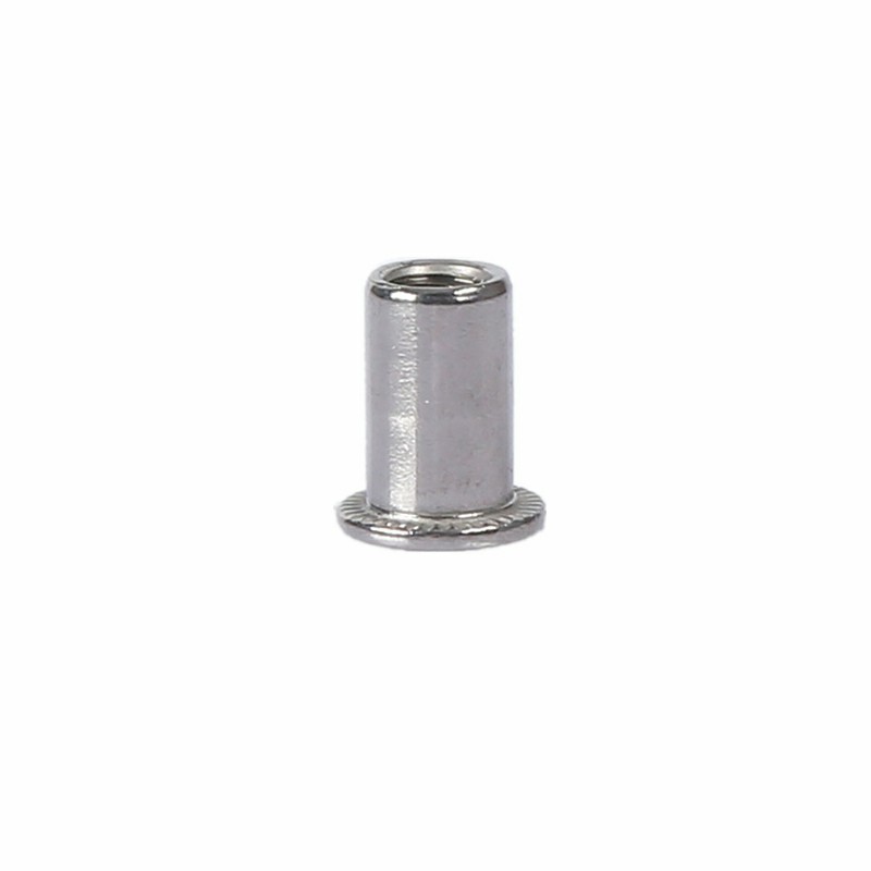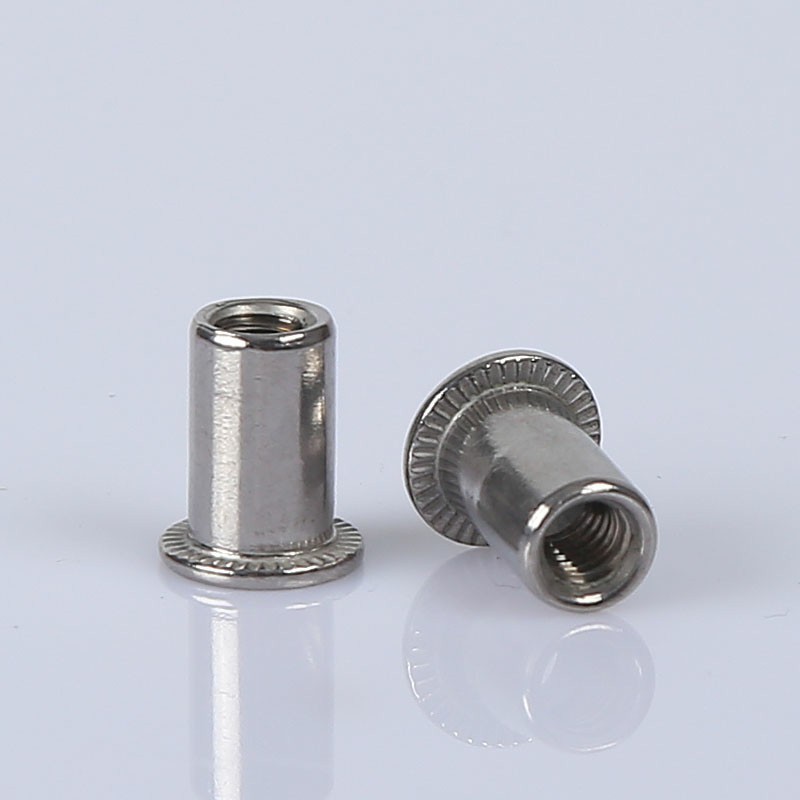 Відповідь: Встановлення наших гайок, що заклеїли голову, що закриває, дуже проста, і ви можете завершити установку, працюючи лише з однієї сторони. Потрібно використовувати спеціально розроблений клепальний пістолет або гідравлічну машину для витягування оправки - під час роботи рукав буде деформувати та зчепити заготовку ззаду. Це утворює постійну і сильну нитку.