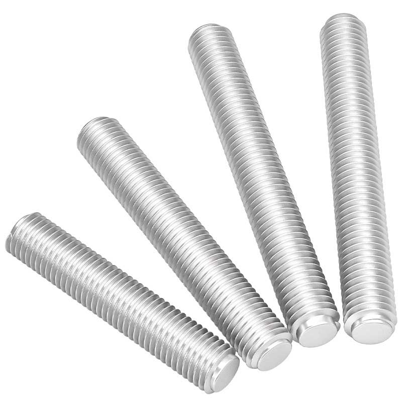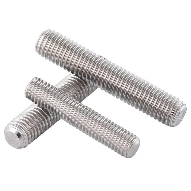 Повністю різьбові шпильки з овальними точками зазвичай плоскі або мають невелику площину. Поширені матеріали включають вуглецеву сталь, нержавіючу сталь та алюмінієвий сплав. Його часто спостерігають у ваговому обладнанні, а також часто використовується у вологих або корозійних місцях.