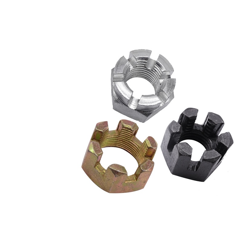 Відповідь: Наш високий крутний момент з гайкою з прорізом зазвичай виготовляється з вуглецевої сталі (4,8, 8,8), леплової сталі (клас 10.9) або нержавіючої сталі (A2-304, A4-316). Конкретні матеріальні сертифікати (наприклад, EN 10204 3.1) доступні за запитом. Ми переконуємось, що ці горіхи відповідають міжнародним стандартам, такими як DIN 935 або ISO 4161, коли мова йде про властивості матеріалів. Таким чином, вони досить сильні та довготривалі для жорстких робіт, де вам потрібен надійний замок.