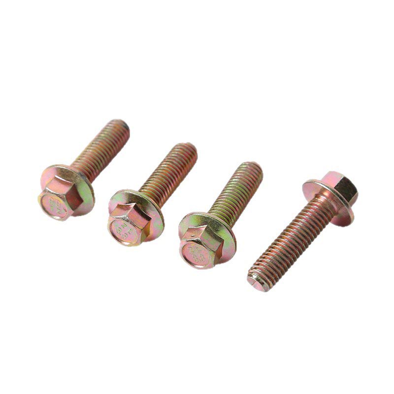 Цей тип метричних шестигранних фланцевих болтів класу 8,8 оснащений вбудованим захистом від ковзання, головним чином завдяки зубчастій конструкції на основі фланця. Текстурована поверхня створює додаткове тертя між болтом і поверхнею кріплення, запобігаючи ковзанню або зміщенню головки під час затягування або легкого руху. Їй не потрібні додаткові шайби для стабільного зчеплення, вона залишається вирівняною під час звичайного складання та щоденного використання, не зісковзуючи з місця. Комбінація фланцевої конструкції та жорсткого допуску різьблення допомагає запобігти відкиданню. Фланець рівномірно розподіляє силу затиску по всій площі контакту, зменшуючи зазори напруги, які спричиняють ослаблення від вібрації або багаторазового використання. Різьби оброблені для щільного прилягання, тому болт залишається надійним навіть в обладнанні, яке працює з постійними невеликими трясіннями або періодичними рухами. Він також має гідну зносостійкість для звичайного промислового використання. Основний матеріал із вуглецевої сталі та стандартне покриття поверхні витримують щоденне тертя, повторне затягування та незначне стирання. Шестигранна головка протистоїть закругленню під час використання гайкового ключа, а край фланця не стирається швидко через часте встановлення та зняття. Він зберігає структурну форму та функціональність завдяки тривалому звичайному використанню.