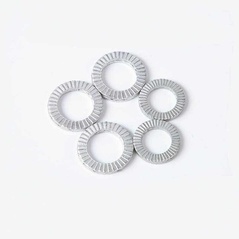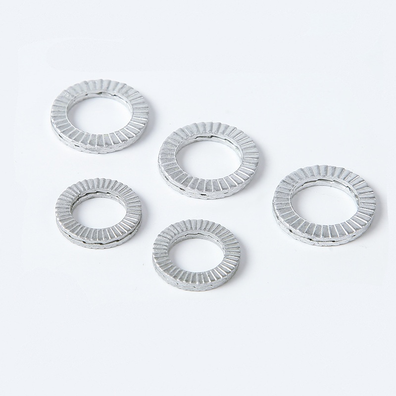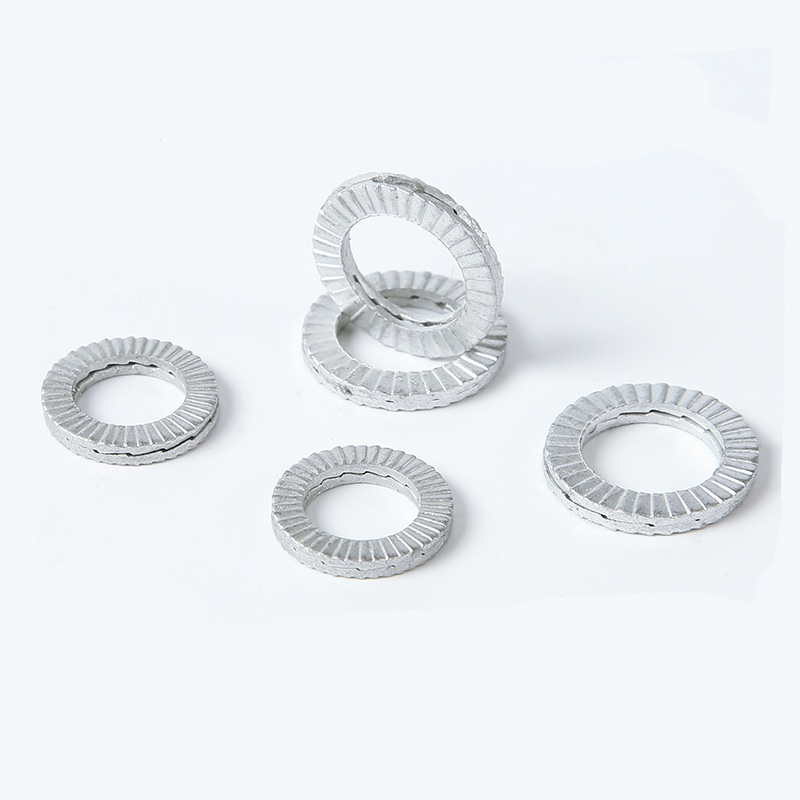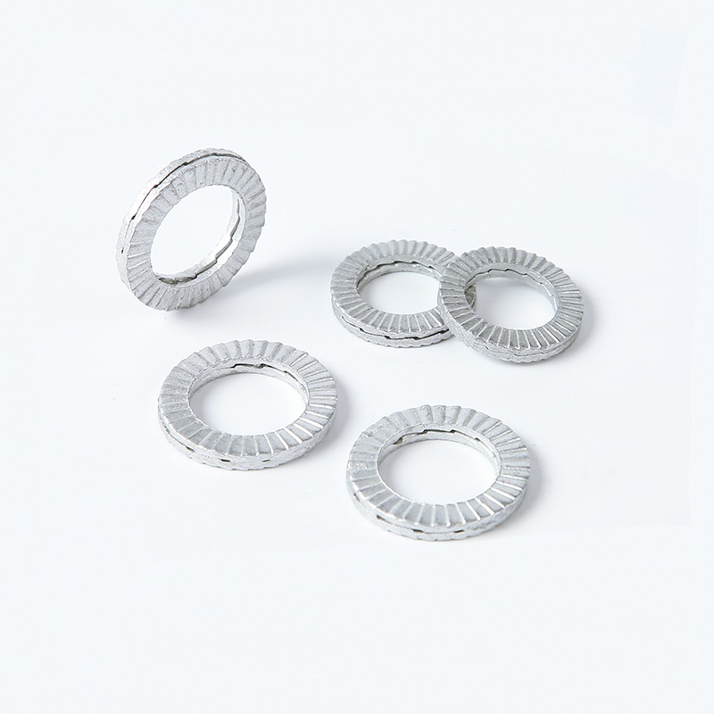 Розділені шайби, як правило, послаблюються і припиняють роботу, а зубчасті шайби замку не так добре стискаються. Але шайби для місії, що критикують два складки, кращі - вони зафіксували надійно, використовуючи як весняну дію, так і тертя. Порівняно з листопадами з нейлоновими вставками або цілометальними, ці двоскладні шайби зазвичай можуть обробляти більш високі температури. Крім того, у них немає проблем з тим, наскільки добре поєднуються нитки.