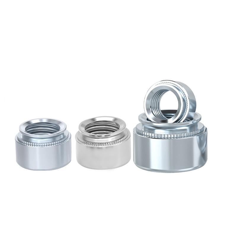 Головне, що стосується постійного горіхового горіха,-це те, що він може утворювати постійне міцне з'єднання безпосередньо в пластичному листовому металі або кольорових плитах, не потребуючи попередньо просвердлених нитків. Коли ви встановлюєте його, прес штовхає постійну гайку, що потрапляє в матеріал. Його специфічна форма змушує метал навколо нього рухатися і надходити в кільцевий відступ (як Knurl або канавка) під головою та/або навколо хвостовика.