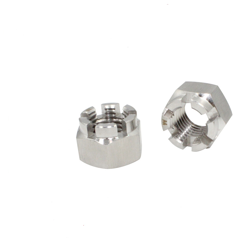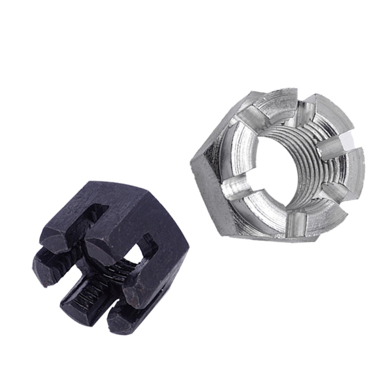 Відповідь: Наша позитивно замикаюча коронна гайка з слотом буває в різних матеріалах - тому вони можуть відповідати різним потребам навколишнього середовища та силам. Вибираючи матеріали, ми зазвичай вибираємо сталь і нержавіючу сталь 8 класу (наприклад, SS304 або SS316). Латунь також дуже часто використовується.