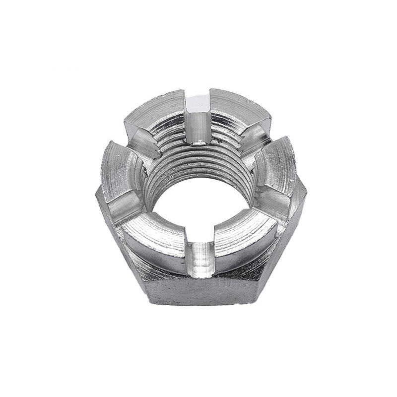 Цей позитивно замикаючий коронний горіх із слотом широко використовується у важкому промисловому обладнанні, таких як преси, транспортні системи та обертові вали тощо.