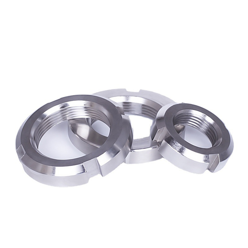 Прецизійно оброблена кругла гайка з прорізами – це спеціальні кріпильні елементи, які використовуються для фіксації деталей на механічному обладнанні, де звичайні гайки можуть ослабнути від вібрації. Основне використання гайки – на автомобілях і промислових машинах, зокрема на осях, валах і рухомих частинах, які потребують постійного блокування.