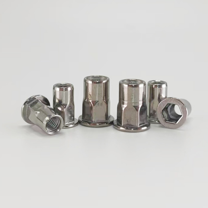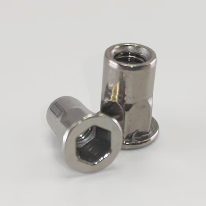 Надійна шестигранна заклепкова гайка широко використовується в таких галузях, як автомобільна, аерокосмічна, залізнична та побутова техніка. Він призначений для створення міцних різьбових точок кріплення на металевих листах і трубах. Він створений спеціально для тісних місць, де можна дотягнутися лише з одного боку, тому він добре підходить для сліпих застосувань. Ця застібка підходить для тонких матеріалів (від 0,5 до 6 мм). Вам не потрібно зварювати або нарізати внутрішню різьбу під час використання, а після встановлення він не легко обертається.