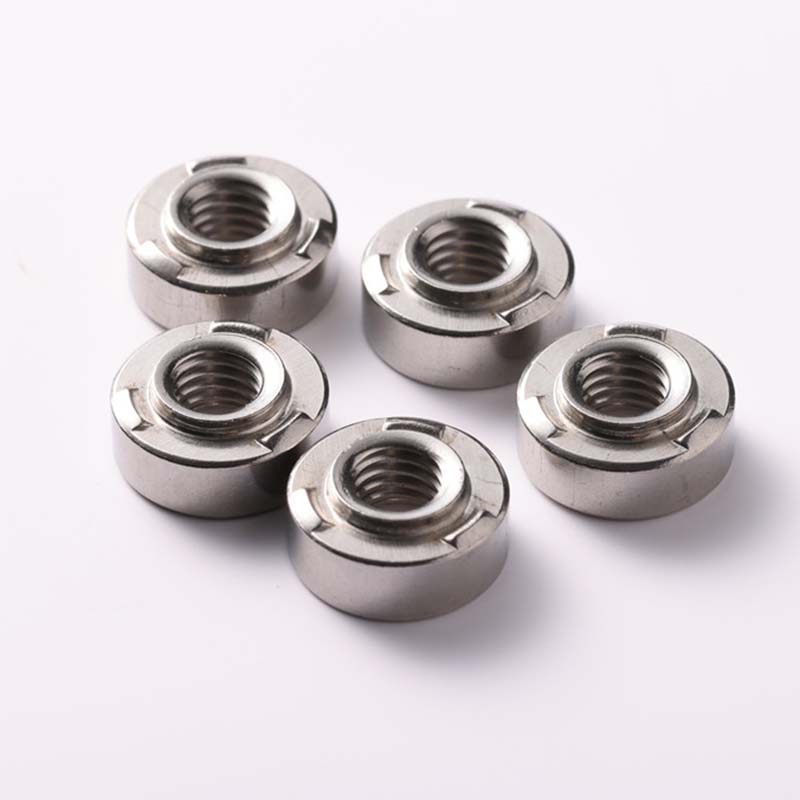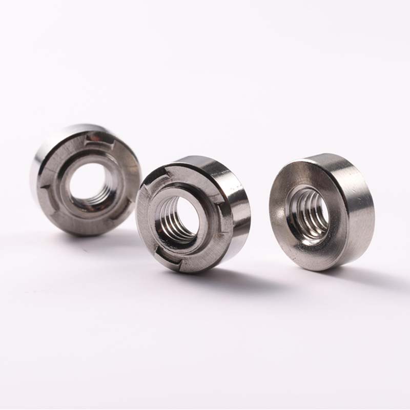 Зварювальна гайка, що самозаклинюється, має зубчасту або зубчасту структуру під основою. Коли ви просвердлюєте їх у попередньо просвердлені отвори (за допомогою спеціального зварювального пістолета або інструменту), ці зубці вставляються в металеву пластину. Потім можна виконати зварювання через центральний отвір гайки. Зварювання назавжди зафіксує його на місці, але зубці вже міцно закріпили його для процесу зварювання. Геніально розроблена самозамикаюча конструкція, що дозволяє досягати механічного замикання одночасно під час зварювання, забезпечуючи подвійну гарантію стабільності з’єднання. Він має сильну адаптивність до зварювальних частин. Незалежно від того, чи це тонка залізна пластина чи товста сталева пластина, вона може міцно та гладко виконувати зварювання та фіксацію.
