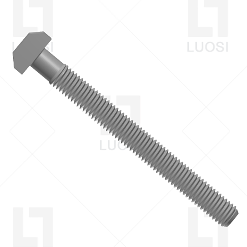 Т -головка та наполовину порожнистий якорний болт використовується для виправлення рейок до бетонних шпал. Т-подібна головка є плоскою і широкою, що забезпечує міцну опорну поверхню для нижньої пластини рейки. Болти трохи зігнуті під натягом, що допомагає підтримувати силу затискача, коли рейка тоне або рухається, що має вирішальне значення для стабільності доріжки.