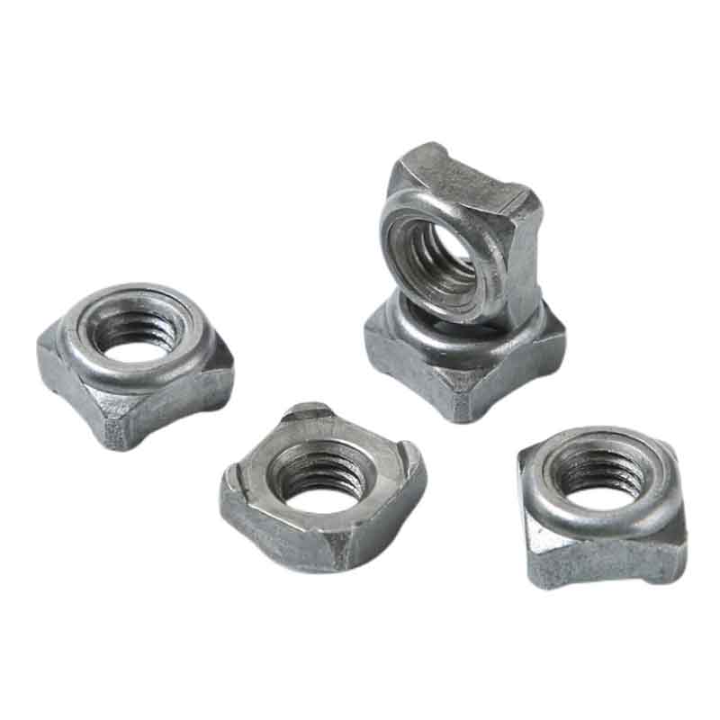 Квадратні зварювальні гайки типу А є типом спеціальних зварювальних гайок. Вони мають квадратну форму і чотири зварювальних виступи, що робить процес зварювання більш безпечним. Нитки також стандартні, що дозволяє їм добре підходитиболти.