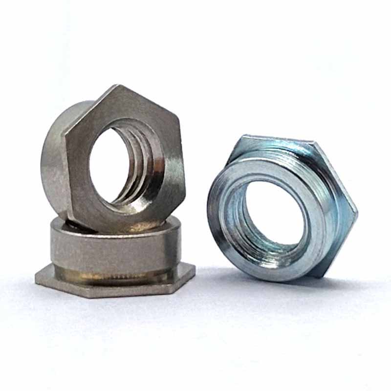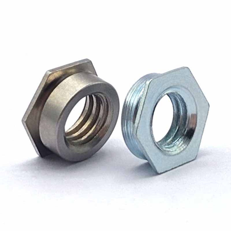 Гайка ООН, що вставляється,-це гайка з нержавіючої сталі з тепловою обробкою. Вони зупиняють нитки від зачистки м'яких матеріалів, можуть проходити випробування на розпилення солі, що тривають понад 10 000 годин (ASTM B117) і працювати в температурі від -200 ° C до 800 ° C. Порівняно зі звареними деталями, вони легші, що скорочує вагу всієї системи.
